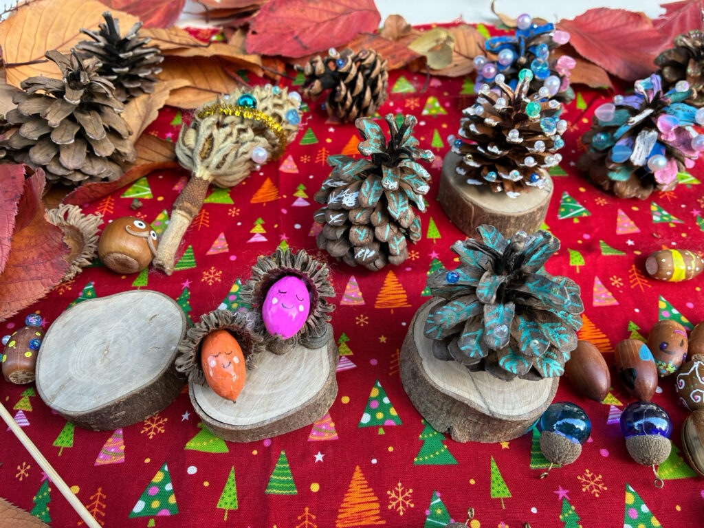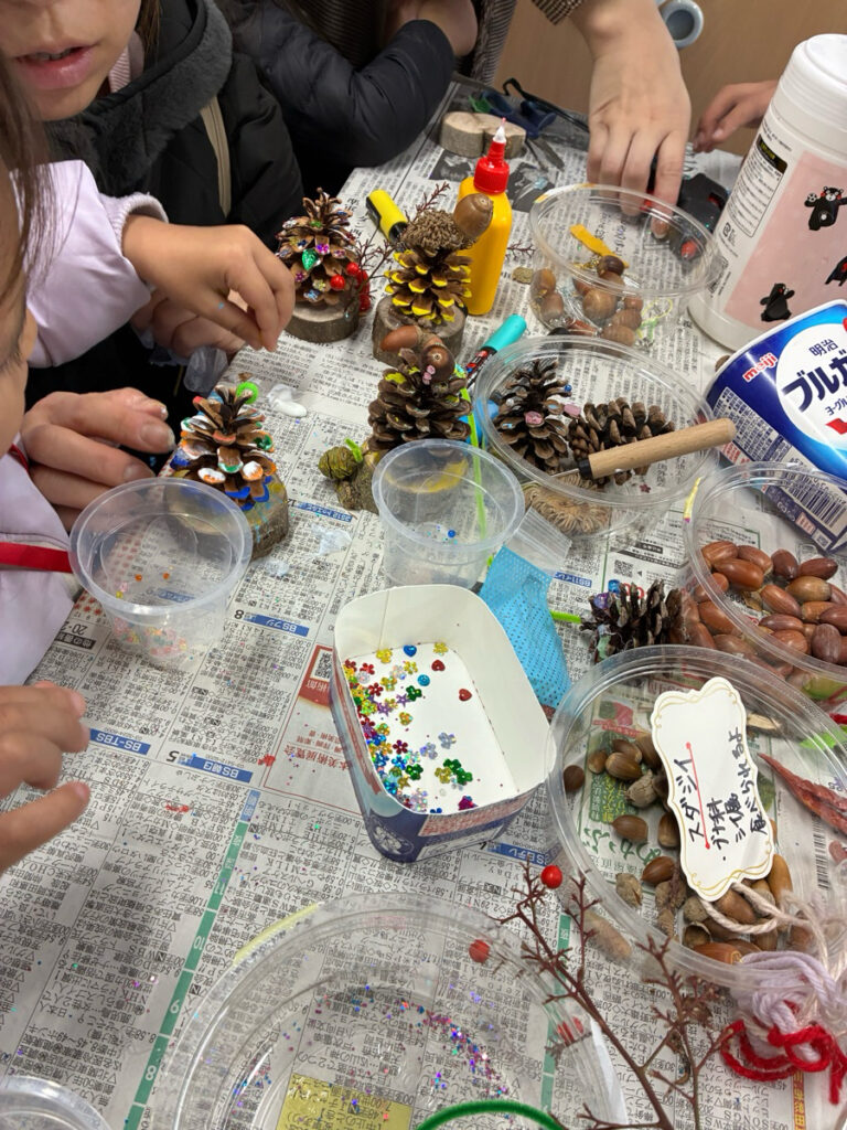 どんぐり工作、落ち葉アート、クリスマスツリーやリースの製作を行いました。